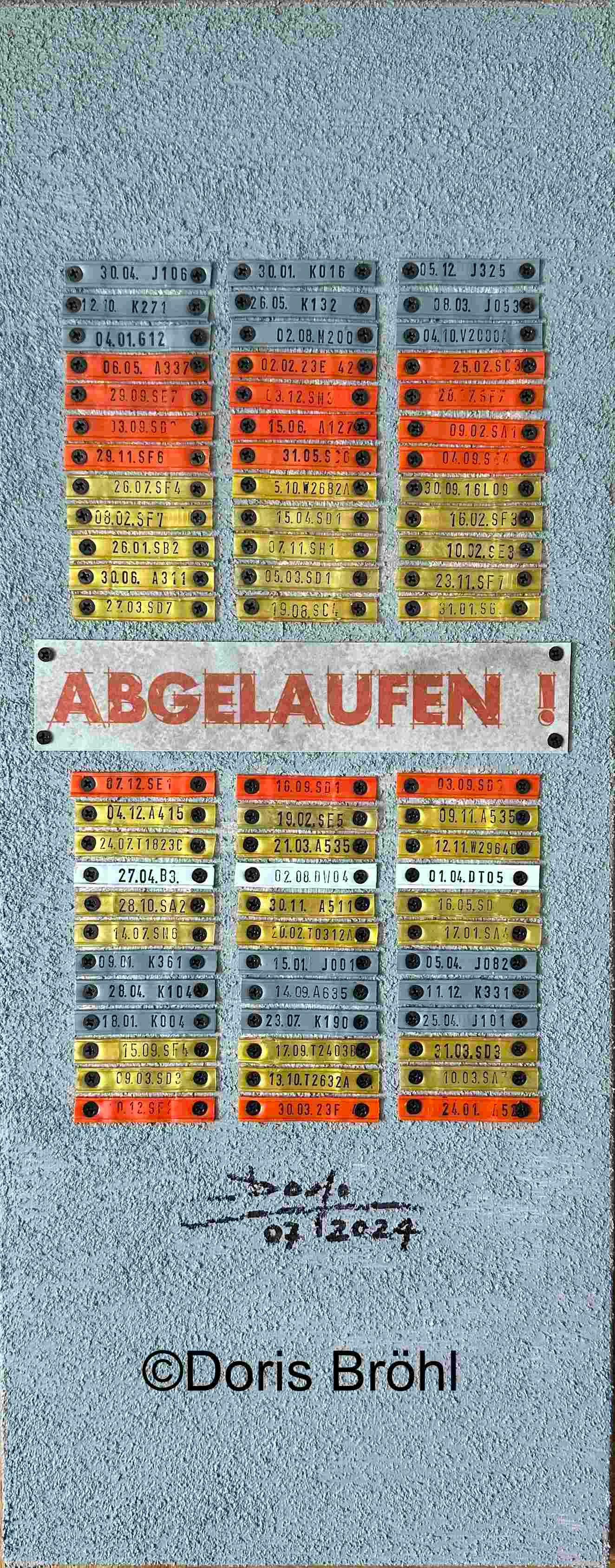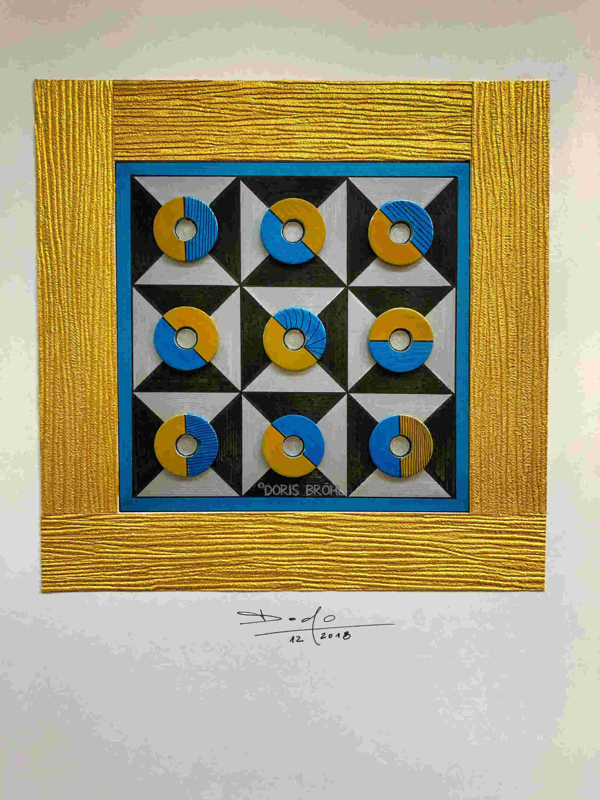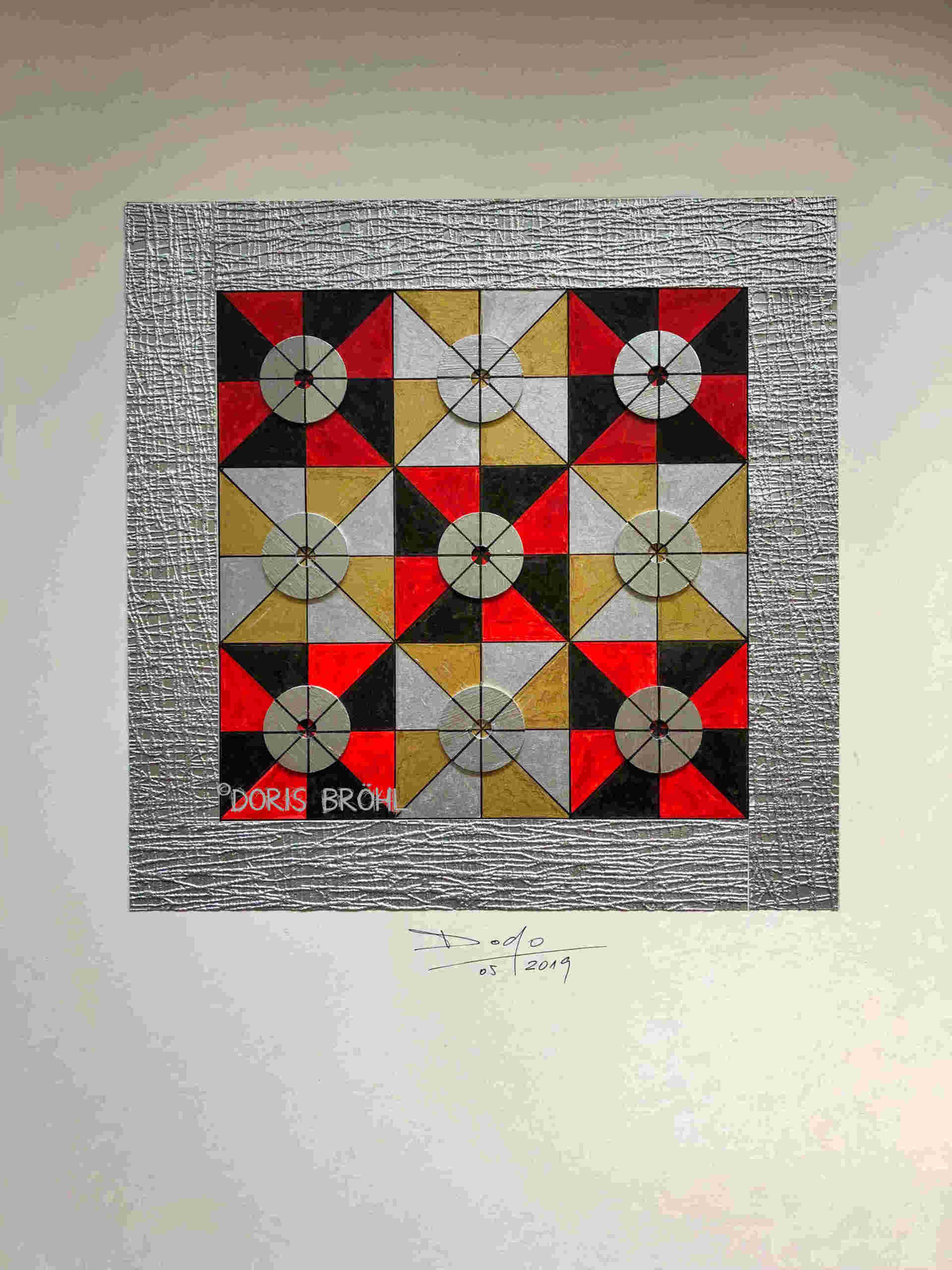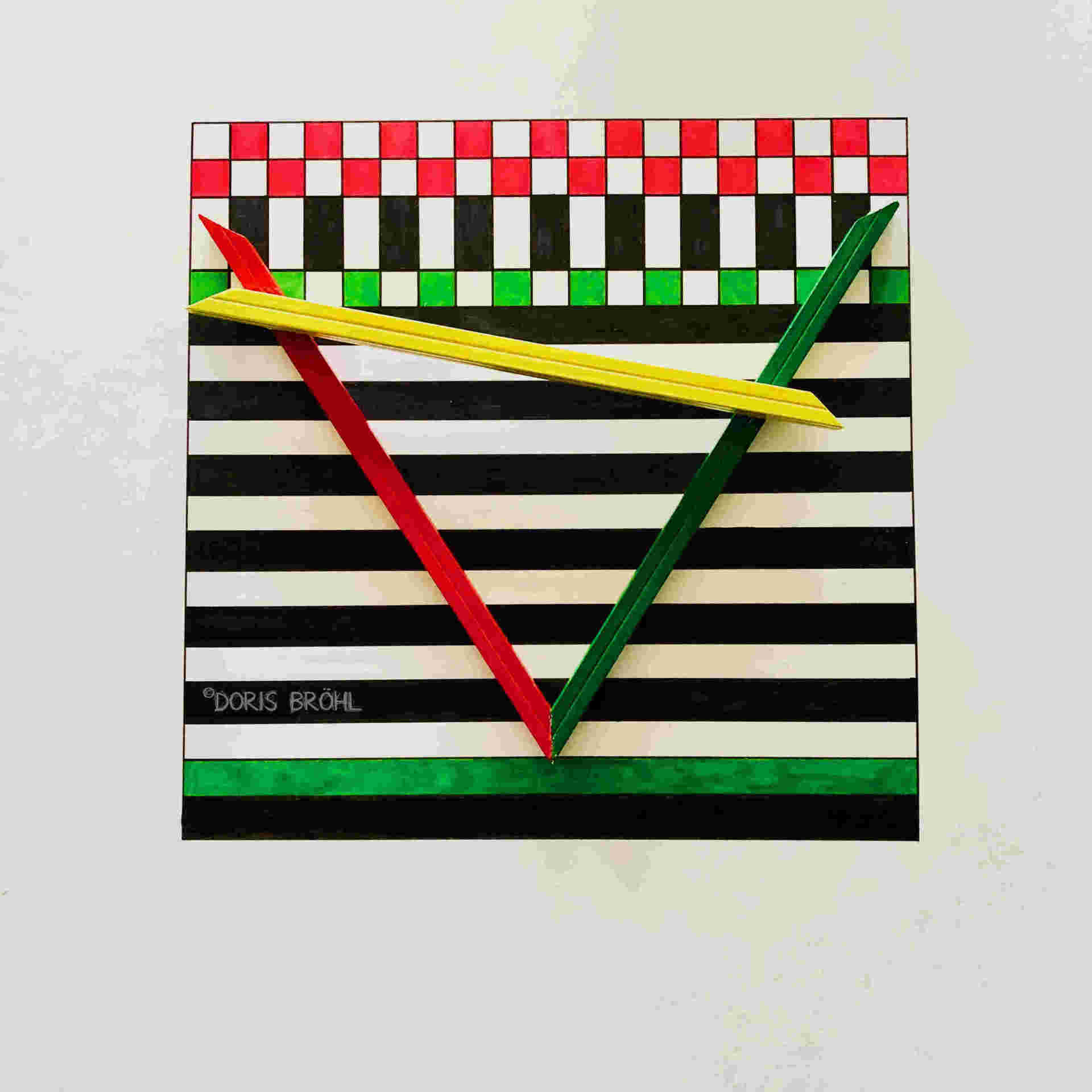 Hier habe ich alte Single-Schallplatten bemalt und sie auf einen weißen Zeichenkarton 30x40 cm geklebt