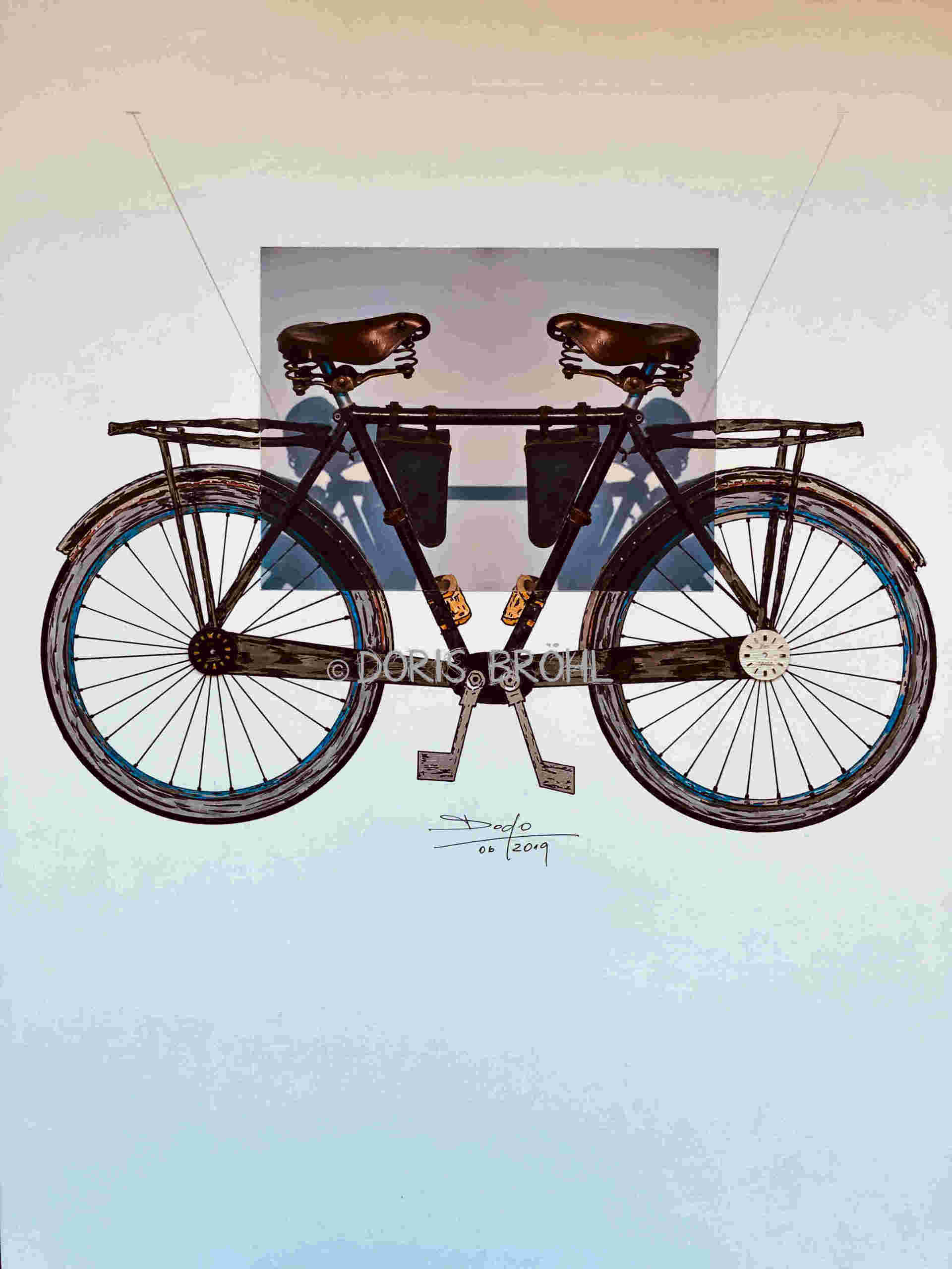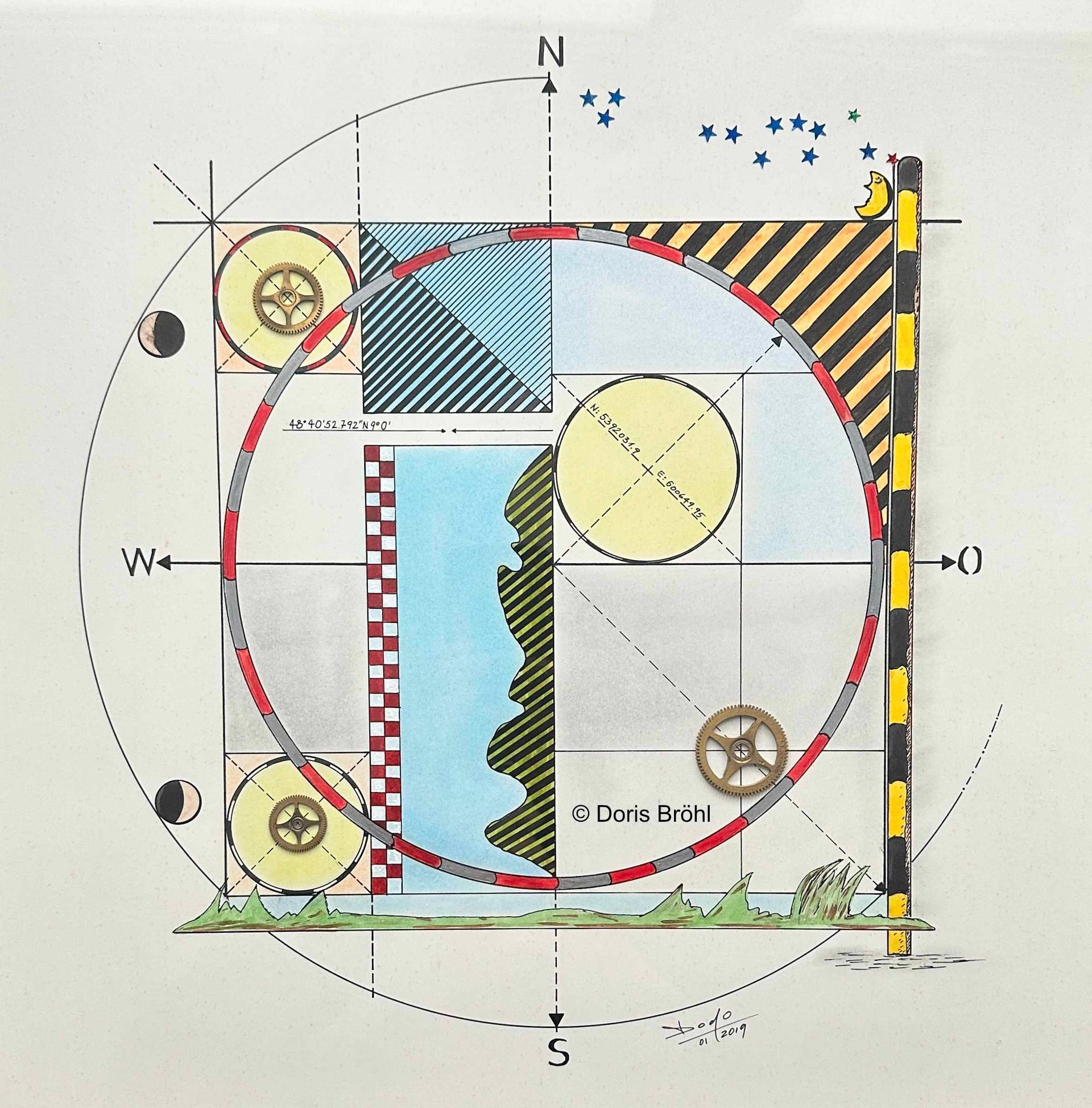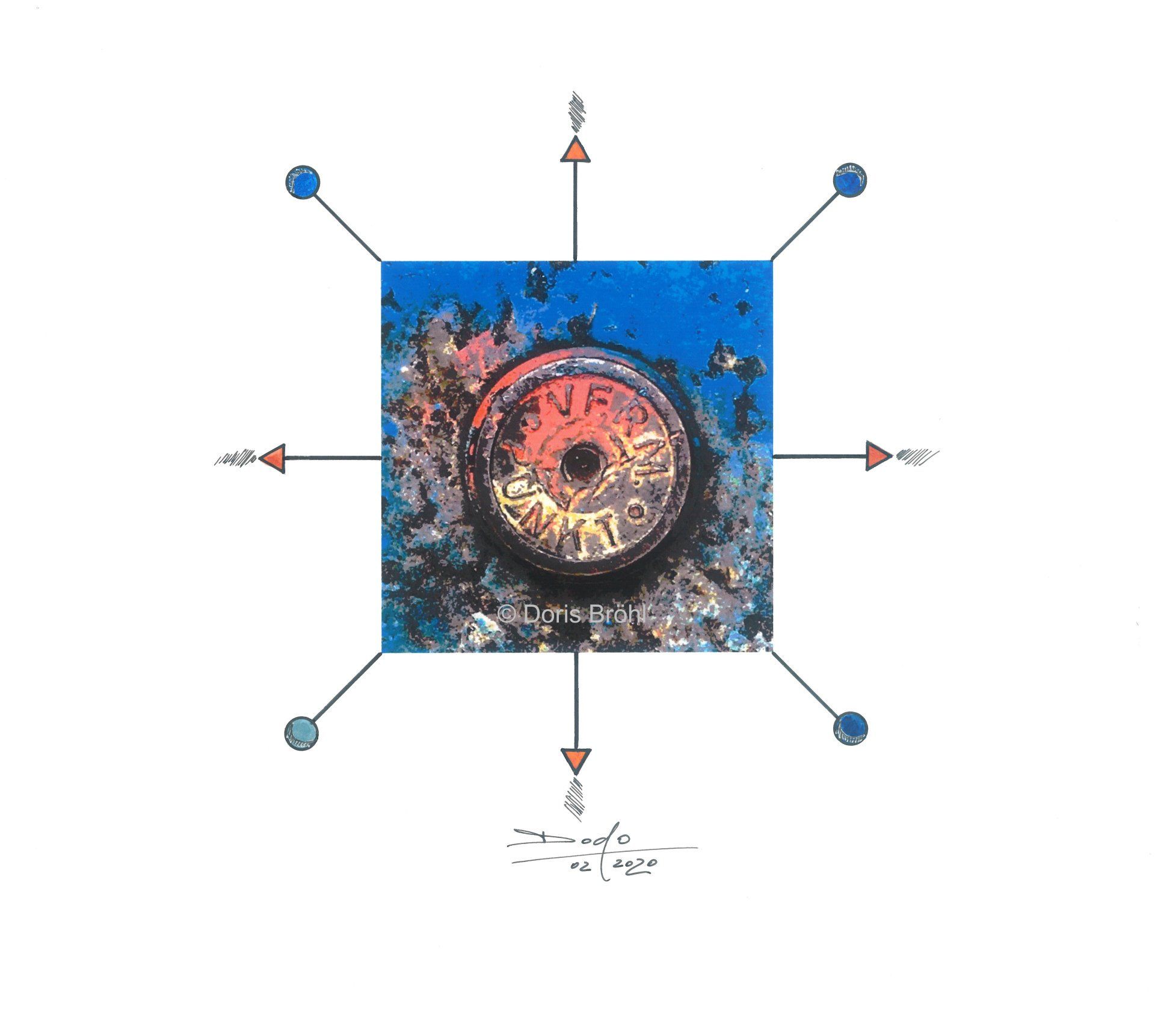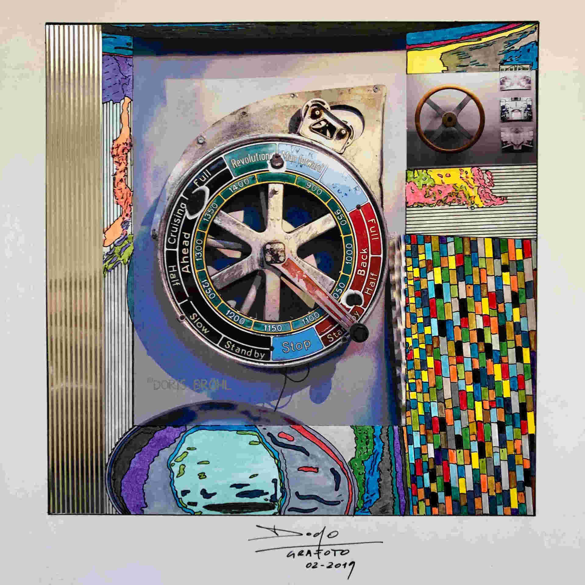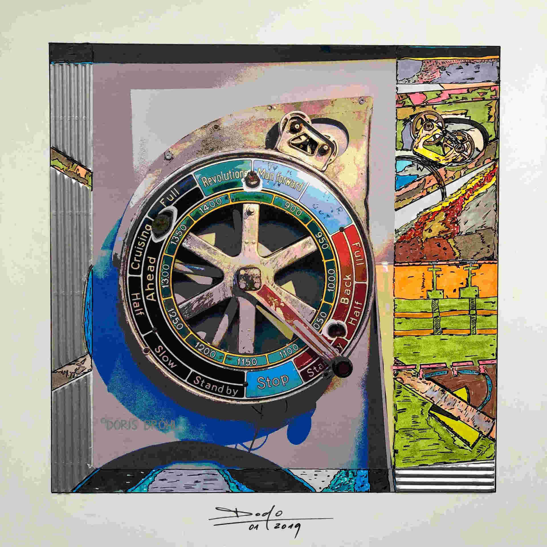 Eine Kamera habe ich immer dabei. Daraus entstehen viele Momentaufnahmen. Bei den nachfolgenden Bildern sieht man die Kombination aus größtenteils eigenen Fotografien und den von mir selber gezeichneten und colorierten "Ergänzungen" zur Fotoaufnahme aber auch viele gezeichnete und montierte Bilder. In manchen Bildern verwende ich Originalteile direkt im Bild. Das können z.B. Unterlegscheiben, Kordel und Fäden, Glasröhrchen, Rührstäbchen, Teile aus alten Uhren, Alu-Profile, Knöpfe etc. etc. sein oder auch nur Objekte.